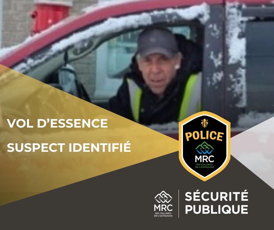 À la suite d’un vol survenu le 13 mars dernier à la station-service Marcotte dans la municipalité de Pontiac secteur Quyon, le service de la Sécurité publique de la MRC des Collines-de-l’Outaouais fut en mesure d’identifier l’auteur du vol présumé qui, lui, aurait aussi actif pour le même type de vol mais sur le territoire de la MRC Pontiac.