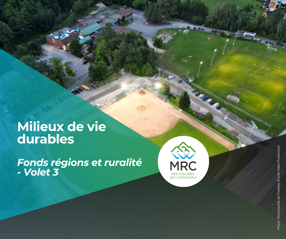 Grâce à une entente signée en mars 2024 avec le ministère des Affaires municipales et de l’Habitation, un montant de 1 707 102 $ a été octroyé à la MRC des Collines-de-l’Outaouais dans le cadre du Fonds régions et ruralité – Volet 3 – Projet signature innovation. Ce projet, intitulé « Milieux de vie durables », vise à accroître et préserver la qualité de vie sur l’ensemble du territoire en agissant de manière concrète sur les cœurs villageois.